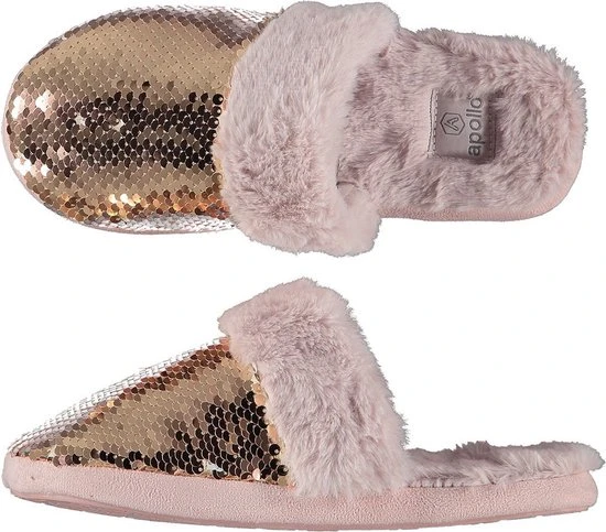 Apollo Dames Instap Slippers/pantoffels Met Pailletten Roze Maat 39-40
