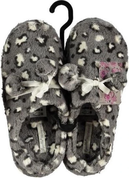 Apollo Instap Sloffen/pantoffels Panter Met Balletjes Voor Dames – Grijs/witte Slippers Voor Dames 39-40