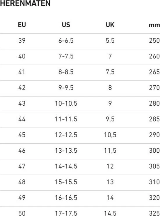 | Maat | 35, 36, 37, 38, 39, 40, 41, 42, 43, 44, 45, 46 |
