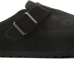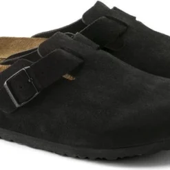 De BIRKENSTOCK clog Boston is een echte klassieker die zonder problemen het hele jaar door kan worden gedragen. Birkenstock Boston Zwart Normaal Voetbed – 660471 De BIRKENSTOCK clog Boston is een echte klassieker die zonder problemen het hele jaar door kan worden gedragen. Het zachte voetbed zorgt dankzij de geïntegreerde schuimlaag voor een extra dosis draagcomfort en verwent de voet, de hele dag. Voor een natuurlijk design zorgt ook het bovenmateriaal van buitengewoon zacht suède dat zich als een tweede huid naar de voet voegt. * Origineel BIRKENSTOCK zacht voetbed; anatomisch gevormd * Bovenmateriaal: suède * Dekzool: suède * Zool: EVA * Details: een band met een individueel verstelbare gesp van metaal; zacht voetbed * “Made in Germany”