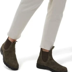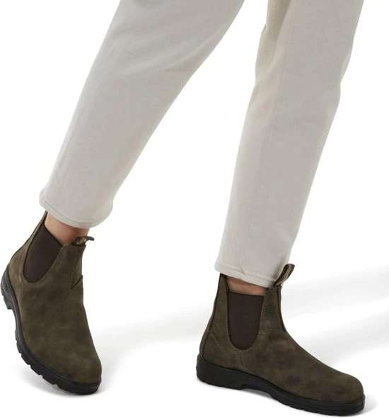 Nubuck chelsealaars voor dames van het Australische merk Blundstone. Deze stoere enkellaars is uitgevoerd in de kleur rustic bruin. De binnenzijde is geheel uitgevoerd in leer. Het uitneembare voetbed kan vervangen worden door een persoonlijke inlegzool of door de extra inlegzolen die meegeleverd worden met de schoen. De lichtgewicht en hittebestendige TPU zool heeft een grof profiel voor stevige grip.