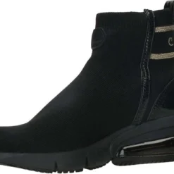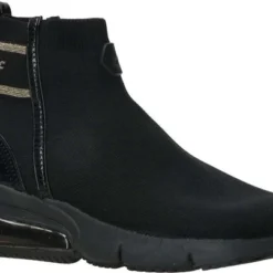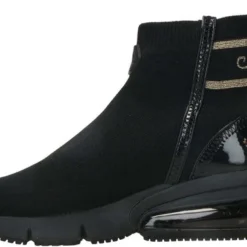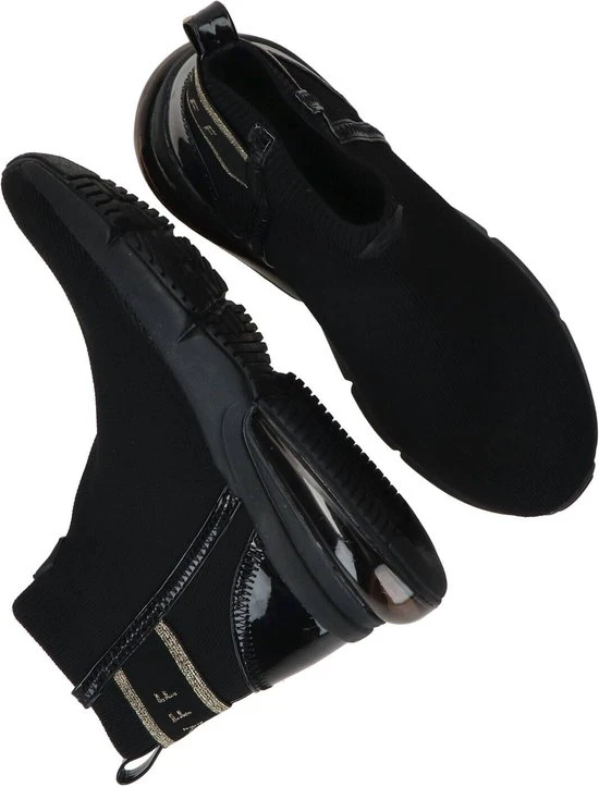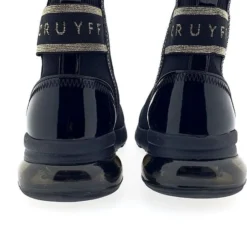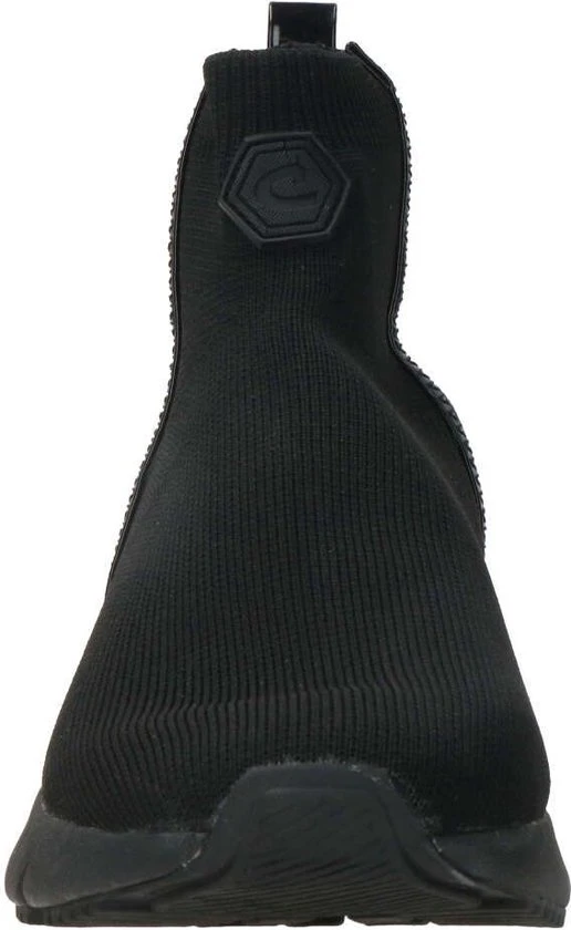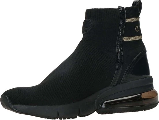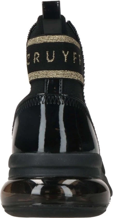 Dit is de nieuwe en trendy Olympique, een zwarte hoge sneaker met een veelzijdig, sportief uiterlijk en opvallende accenten. Deze lichtgewicht sok sneaker van het sportieve merk Cruyff heeft een bovenwerk van elastisch zwart textiel met lakzwarte accenten zoals de hielinzet en de biesjes op de zijkanten met toffe zigzagstiksels. Een ander opvallend details is natuurlijk de elastische band om de achterkant van de schacht met goudkleurige merkborduursel en de lakzwarte aantreklus waarmee je dit model razendsnel aan en uit trekt. Deze sportieve schoen heeft een binnenvoering van textiel met een uitneembaar voorgevormd voetbed die samen met de air unit onder de hiel veel demping biedt. De rubberen zool is onder de voorvoet 2 centimeter dik en loopt naar achteren toe op tot maar liefst 5 centimeter onder de hiel. Ga voor een opvallende finishing touch van jou look met deze sportieve sneaker.