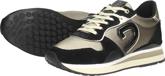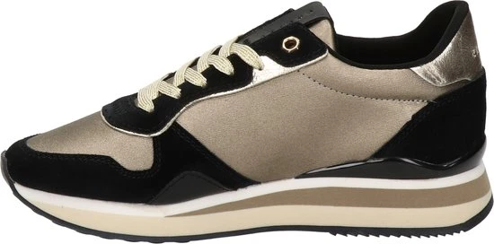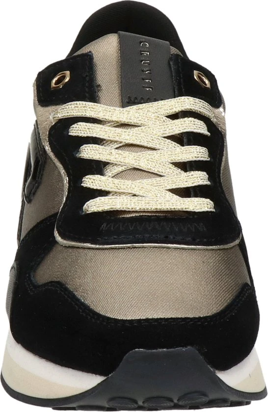 Dit pareltje van het merk Cruyff Classics is geïnspireerd op de originele Cruyff-runner uit 1982 en is geüpdatet met elegante lijnen en een trendy chunky zool. Deze goud met zwarte lage sneaker Parkrunner LUX is uitgevoerd in suède in combinatie met leer en panelen van stevig textiel met op de zijkant het welbekende ‘C’ logo in glanzend leatherlook. Andere opvallende details zijn de metallic goudkleurige veters, het leren merklabel op de tong, de beige accentstrepen in de tussenzool en de zwarte glanzende hielstabilisator voor extra ondersteuning. Verder heeft deze gave sneaker een heerlijk zacht binnenwerk van gevoerd neopreen textiel met een uitneembare EVA midsole die zorgt voor extra ondersteuning en comfort. De tussenzool brengt je letterlijk naar een hoger niveau, zo is hij onder de voorvoet 2 centimeter hoog en loopt hij naar achteren toe op tot wel 3,5 centimeter! De loopzool heeft een fijne visgraat en noppen structuur die zorgt voor een goede grip tijdens al je wandelingen. Combineer hem met een casual outfit of ga voor een stoere jurk, met wat draag jij ‘m?
