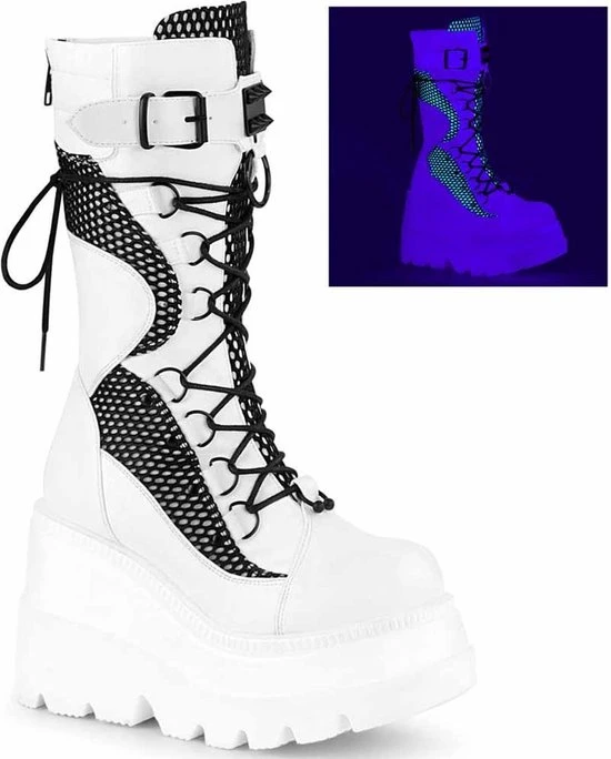 Demonia Plateau Laarzen -38 Shoes- SHAKER-70 US 8 Wit/Zwart