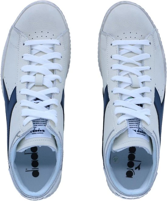 Het Italiaanse merk Diadora produceert al decennialang kwalitatieve sportschoenen en focust zich sinds de laatste 10 jaar ook op de fAshionmarkt. De modellen hebben een vernieuwde look met behoud van het uitstekende comfort en de perfecte pasvormen. Deze off white lage sneaker Game Waxed ROW CUT is geïnspireerd op tennisschoenen uit de jaren ’70 en is uitgevoerd in soepel structuurleer met een beschermende waxlaag. Het mesh binnenwerk zorgt voor een ademende en vochtopnemende werking en het vaste voetbed heeft een comfortabele demping. Op de zijkant is de herkenbare vamp-tape in donkerblauw te vinden, de tong is voorzien van een textiel merklabel en op de achterkant is een reliëf merkopdruk te vinden. De zoolrand met fijne structuur is voorzien van een subtiele used-look en een reliëf merkopdruk. Het geribbelde profiel zorgt voor onmiskenbare grip op de straten van de stad. Wij vinden het de meest comfortabele retro sneaker voor een up-to-date look!