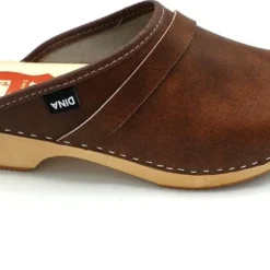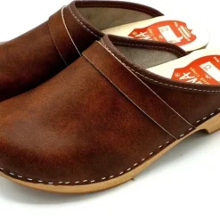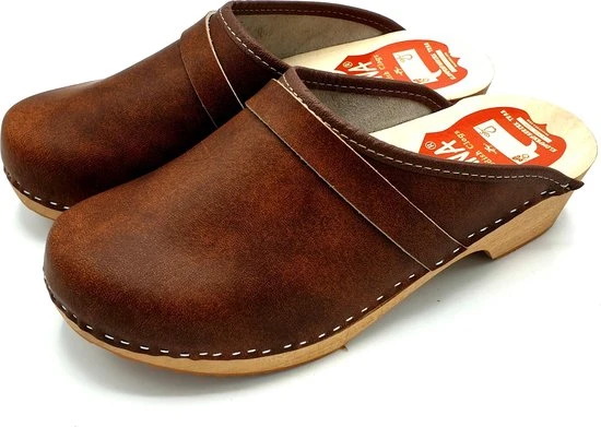 Een echte zweedse klomp met klassiek bruin leer. Ideaal voor in de tuin of op het werk.