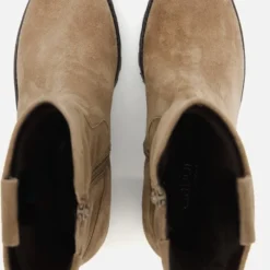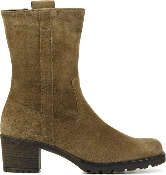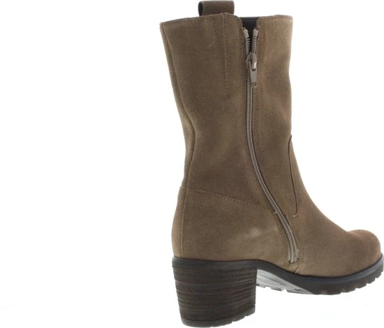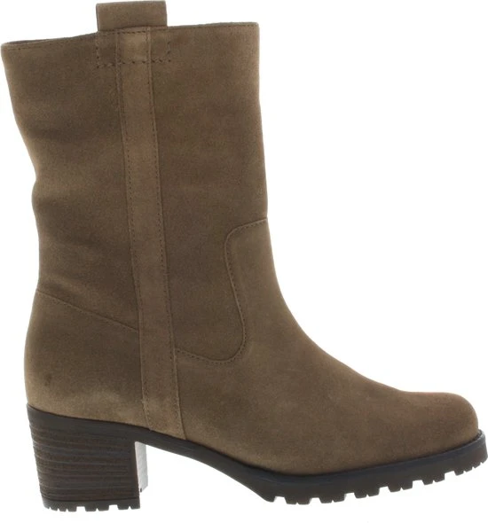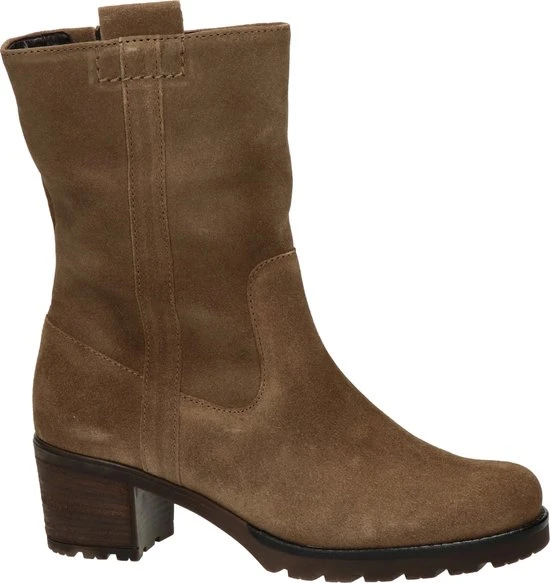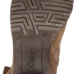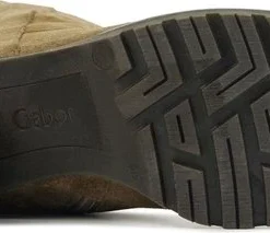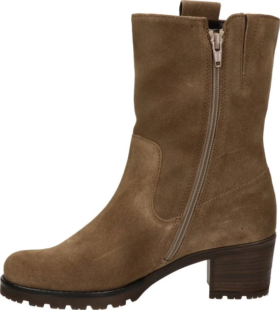 Suède enkellaars voor dames van het merk Gabor. Deze suède enkellaars met ronde neus is uitgevoerd in de kleur taupe. De binnenzijde van de schacht bevat een rits om het aan- en uittrekken te versoepelen. De binnenzijde is uitgevoerd in vacht en een stevig contrefort draagt bij aan het loopgemak. De rubberen loopzool heeft een grof profiel en de hak meet circa 5 cm.