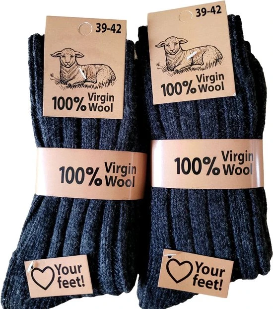 Wollen sokken van hoogwaardige kwaliteit voor zowel dames als heren vervaardigd van 100% scheerwol van het merk HomeofSocks. Deze sokken zijn vol, isolerend, ademend en ideaal tijdens de koude maanden van het jaar. Wol past zich aan naar je lichaamstemperatuur, zodat je voeten net zo warm worden. De scheerwol wordt diervriendelijk gewonnen. Verheugen je voeten naar natuurlijke luxe? Dan zijn deze sokken perfect voor jouw voeten. Wollen sokken worden geleverd in een bundel van vier paren.