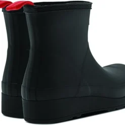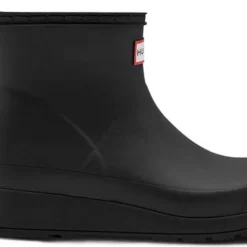Met deze mooie korte regenlaarsjes van het merk Hunter heb jij gegarandeerd droge voeten wanneer je een regendansje doet! Dit model Play Boot Short heeft een zwart rubberen buitenkant met het merklogo aan de voorkant van de schacht en een handige aantreklus van textiel aan de achterzijde.