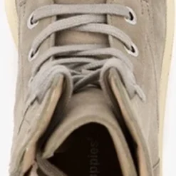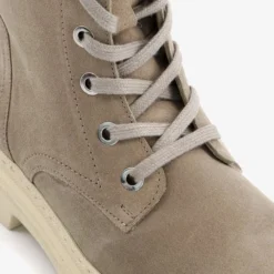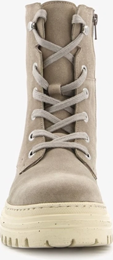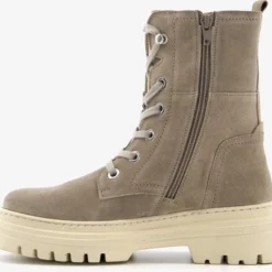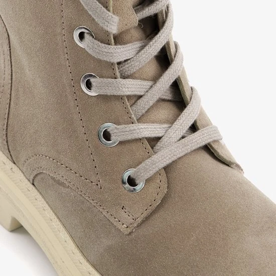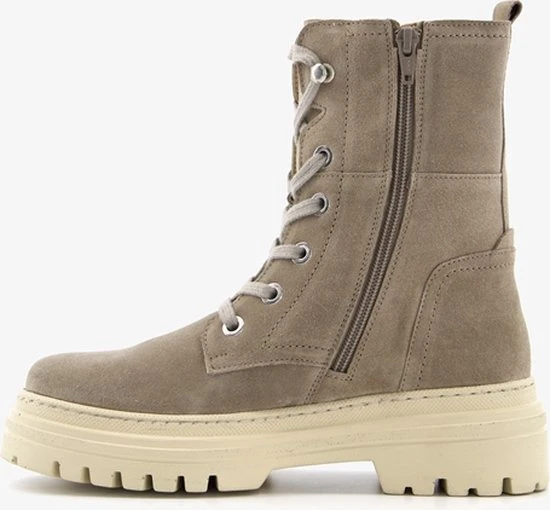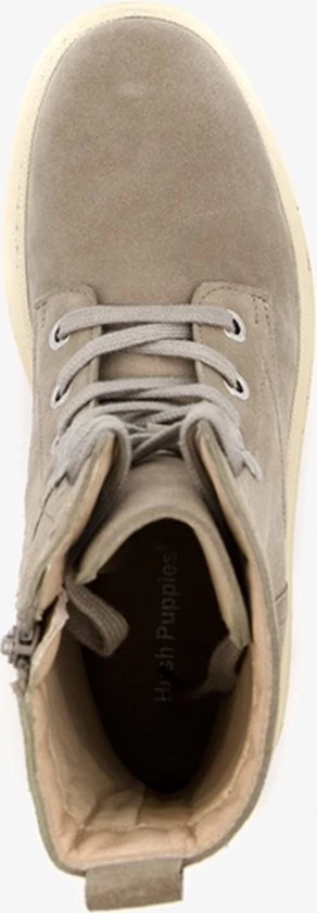 Taupe/groene suede veterboots van Hush Puppies. De veterboots zijn gemaakt van leer, hebben een binnenwerk van textiel en een stevige profielzool. De boots zijn voorzien van vetersluiting en een ritssluiting aan de binnenzijde. De binnenzool is gemaakt van leer, deze is niet uitneembaar. De chuncky, beige buitenzool zorgt voor grip en demping tijdens het lopen. De schachthoogte is circa 18 cm, de hakhoogte circa 2 cm. Combineer de boots met een van onze toffe winterjurken of met een leuke jeans!