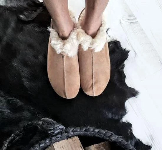 De zool van deze slof is zacht, flexibel en de schapenvacht die ook onder de voet zit isoleert zeer goed tegen de kou.