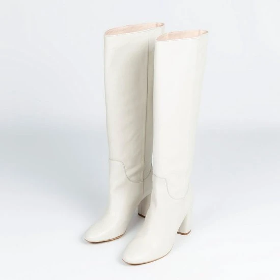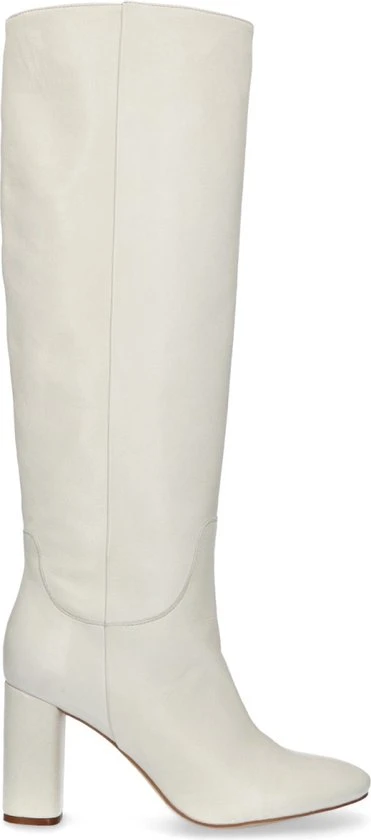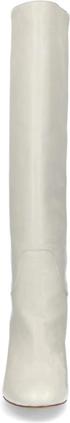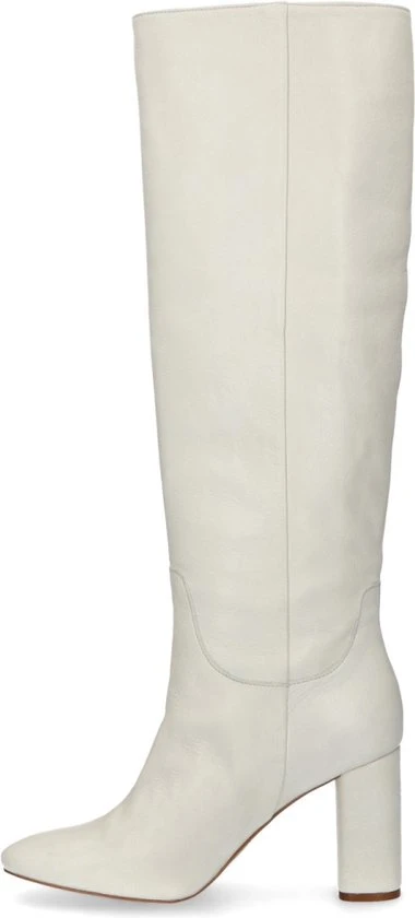 Elegante en vrouwelijke laarzen met een hoge hak van het merk Manfield. Witte laarzen zijn helemaal hot! Ze zijn gemaakt van leer en hebben een hakhoogte van 9 cm. De schachthoogte is 41 cm en de schachtomtrek is 37 cm, gemeten voor een maat 37. Combineer de laarzen bijvoorbeeld onder een broek met een mooi patroon, of onder een zomerse jurk!