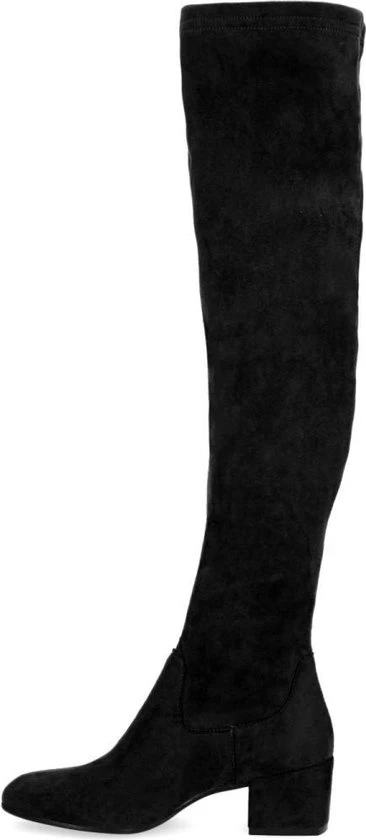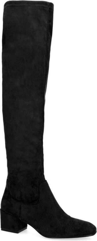 Terug van weggeweest: de overknee laarzen! Tot onze grote vreugde, want deze pareltjes kan je oneindig veel combineren. Deze zwarte variant van Manfield staat bijvoorbeeld prachtig onder een little black dress of over skinny jeans. De laarzen zijn gemaakt van stretch materiaal en hebben een leren binnenzool. Het blokhakje is 6,5 cm hoog. De schachthoogte van de laarzen is 50 cm en de schachtomtrek is 38 cm. Door het stretchy materiaal sluiten de laarzen perfect aan op je benen.