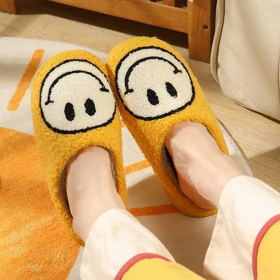 Heb jij ooit zulke leuke slippers gezien? Iedere stap die je zet tovert een glimlach op je gezicht. Het vrolijke smiley design maakt de slippers toch echte eyecatchers. De slippers zijn dankzij het stap-in ontwerp eenvoudig en snel aan te trekken. Draag de slippers lekker in huis tijdens het chillen of draag ze om jouw thuiswerk-outfit mee af te maken!