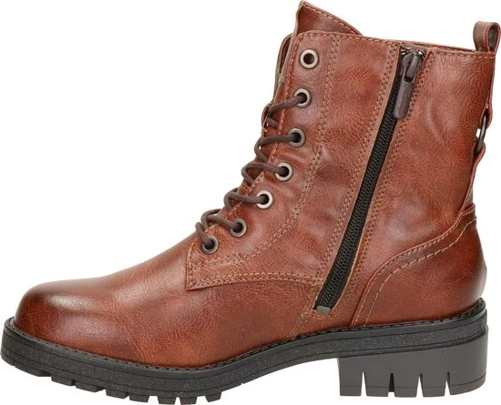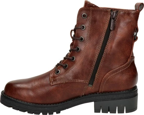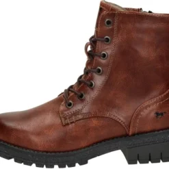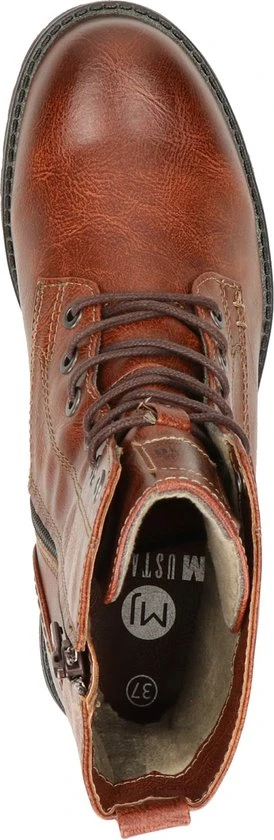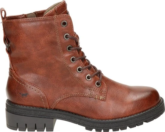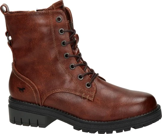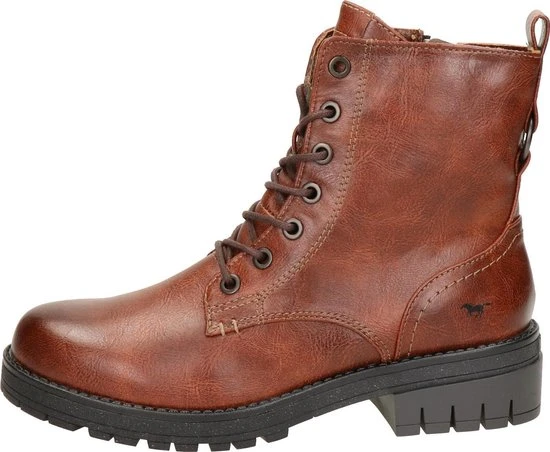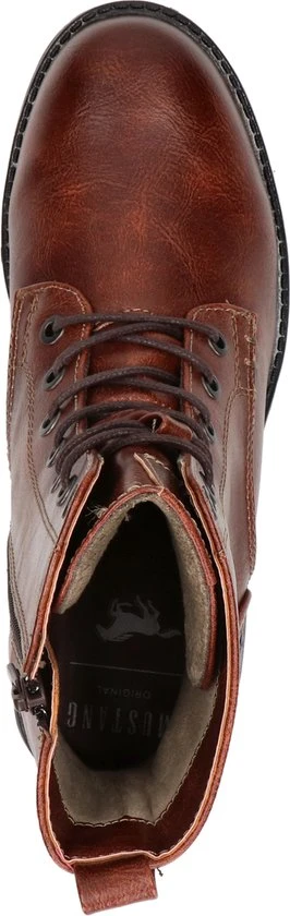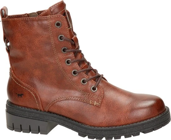 Mustang dames veterboot. Een stevige veterboot voor dit najaar, van het merk Mustang. De buitenzijde is uitgevoerd in imitatieleer. De binnenvoering is 100% polyester en voelt zacht aan. De binnenzool biedt demping bij het lopen. Dankzij de rubberen zool ben je van extra grip verzekerd.