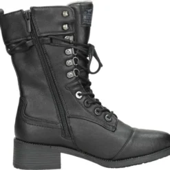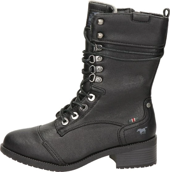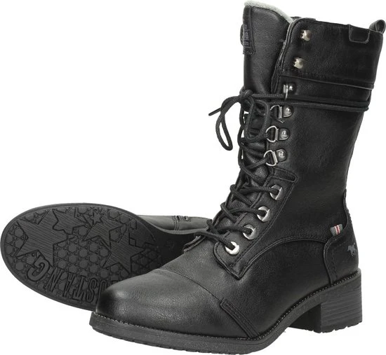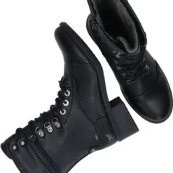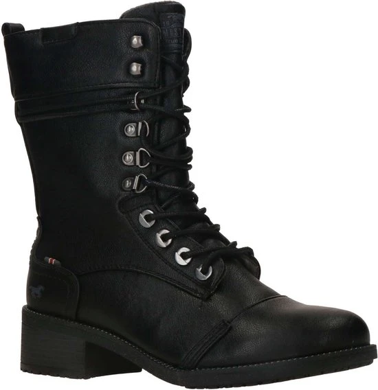 Mustang veterboots dames. Met deze veterboots van Mustang creëer je een stoere touch onder al je outfits. Deze boots zijn uitgevoerd in kunstleder. Voorzien van een textiel binnenvoering. De binnenzool is van textiel en is uitneembaar. Met een rubberen loopzool.