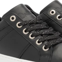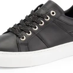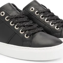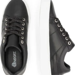De K.Cantley van NoGRZ is een lage sneaker gemaakt van leer. In de veter zit een glitter wat een speels effect geeft aan de schoen. Het voetbed van zacht schuim is uitneembaar. De witte buitenzool is gemaakt van rubber.