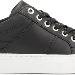 De K.Cantley van NoGRZ is een lage sneaker gemaakt van leer. In de veter zit een glitter wat een speels effect geeft aan de schoen. Het voetbed van zacht schuim is uitneembaar. De witte buitenzool is gemaakt van rubber.
