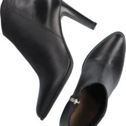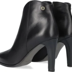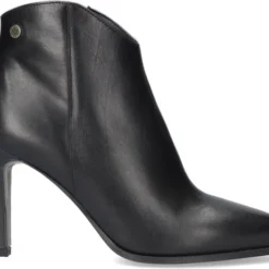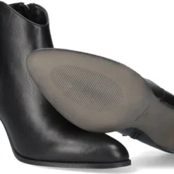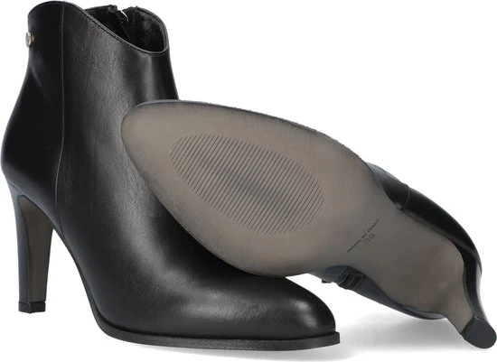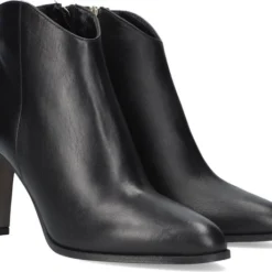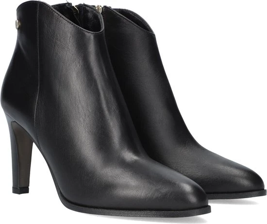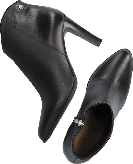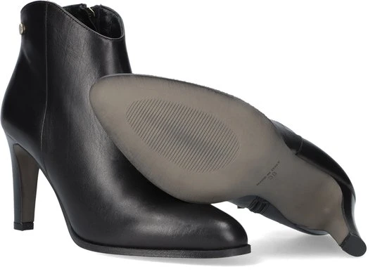 De elegante Italiaanse ontwerpen van het merk Notre-V zijn er voor de verfijnde vrouw die er graag effortless chic uit wil zien. De producten zijn gemaakt van luxe materialen met subtiele accenten en een knipoog naar de laatste trends. Dit zwarte enkellaarsje 7433 heeft een feminin uitstraling door de slanke vormgeving en is voorzien van een afgeronde schacht en een smalle hak. Het laarsje is uitgevoerd in zacht leer met een handige rits aan de binnenkant voor extra aantrekgemak. Het binnenwerk van zacht en soepel leer voelt comfortabel aan en heeft een vast voetbed. De hak is ruim 8 centimeter hoog en de schacht heeft een hoogte van zo’n 10 centimeter, gemeten bij maat 37.