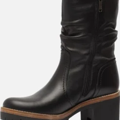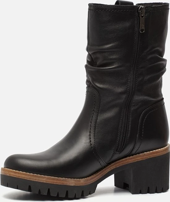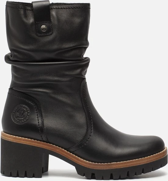 Deze zwarte Panama Jack Piera B1 boots zijn gemaakt van leer. Ook de voering is van dit materiaal gemaakt. Draag de boots onder een jurk of een jeans, je combineert ze makkelijk met al jouw favoriete outfits. Leuke details zijn de plooien aan de bovenkant en de contrasterende kleur boven de zool. Met de rits aan de zijkant trek je de stoere schoenen snel aan en uit. De rubberen profielzool heeft een stevige blokhak met een hoogte van 5 centimeter. Goed om te weten: de Panama Jack Piera B1 boots hebben een uitneembaar voetbed.