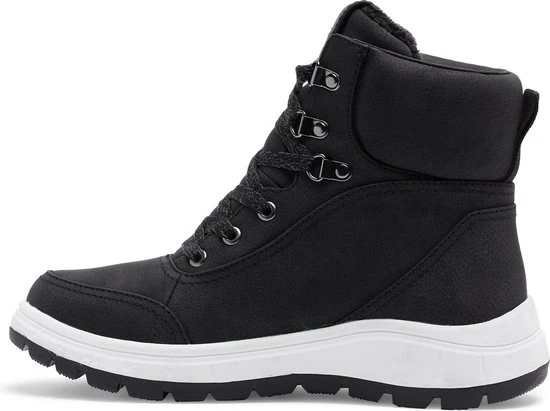 • bovenste details: vetersluiting met metalen oogjes en d-ringen, tong met inzetstuk en gewatteerde kraag