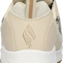Deze Skechers Uno Wild Streets sneakers in de kleur beige zijn gemaakt van synthetisch materiaal. De voering en comfortabele binnenzool zijn gemaakt van textiel. Ter decoratie zijn er sierstiksels, merkopdrukken en inzetten met luipaardprint aangebracht, wat de sneakers een leuk effect geven. Door middel van veters en de lusjes zijn de schoenen gemakkelijk aan en uit te trekken. De chunky zool is gemaakt van rubber en zorgt ervoor dat de sneakers comfortabel lopen. Goed om te weten: het voetbed van deze Skechers Uno Wild Streets sneakers is niet uitneembaar.