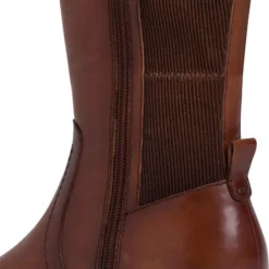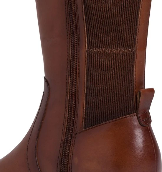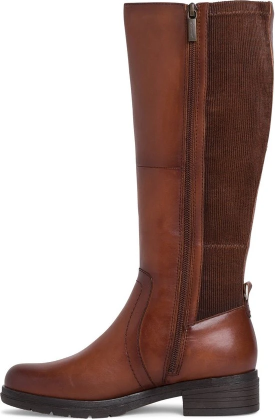 Tamaris dames laars met rits uit de Comfort Fit serie. De laars is uitgevoerd in cognac leer met aan de achterzijde stretch inzet van synthetisch materiaal. De voering is van zacht textiel en heeft een uitneembare inlegzool. Dit model is gemaakt in een iets bredere leest wijdte H. Verder heeft deze laars een blokhak van 3 cm en een flexibele zool.