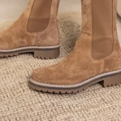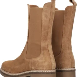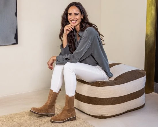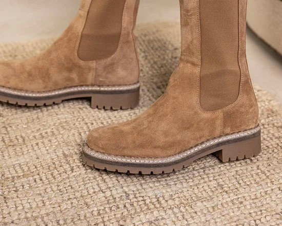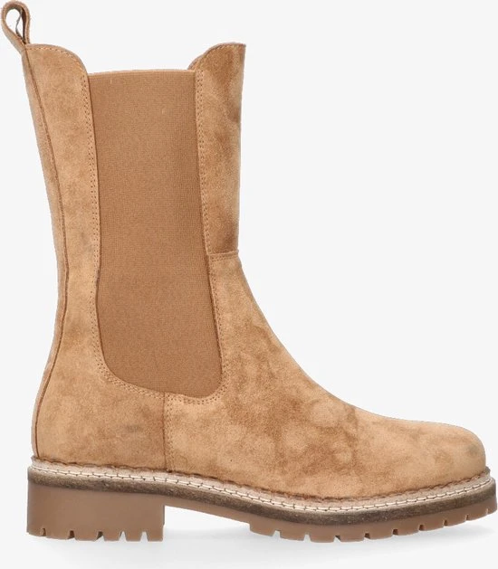 Hoge chelsea boots zijn helemaal volgens de laatste mode en dit seizoen dus onmisbaar in jouw schoenengarderobe! Ze zijn supermakkelijk te matchen met allerlei outfits en zitten ook nog eens heerlijk! Dit camelkleurige model Julie 8 van het merk Tango is uitgevoerd in zacht suède en heeft comfortabele elastische zijpanelen voor een ruimere instap en een prettig loopcomfort. Opvallende details zijn de aantreklus en het kartelrandje langs de zoolrand. Het binnenwerk heeft een voering van leer en textiel en een uitneembaar voetbed. De flexibele rubberen zool met grof profiel is licht van gewicht en geeft de schoen een stoere look. De schachthoogte is 22 centimeter met een wijdte van 28 centimeter aan de bovenkant en de hakhoogte is ruim 3 centimeter. Draag deze boots casual onder een jeans of match ze lekker stoer onder een rokje of jurkje.