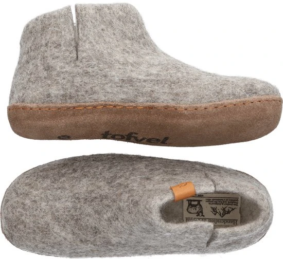 Tofvel Mula grijs pantoffels dames en heren Geniet thuis van heerlijk warme voeten met deze comfortabele Tofvel pantoffel. De Tofvel is voor zowel dames als heren en verkrijgbaar in maat 35 t/m 47. Ben je op zoek naar heerlijk warme wollen sloffen? Dan hoef je niet verder te zoeken. De pantoffels van Tofvel zitten heerlijk en houden de voeten aangenaam op temperatuur. Lekker warm in de winter en koel in de zomer. De duurzame sloffen worden met de hand vervaardigd in Nepal, zonder toepassing van chemicaliën. De schacht van de pantoffel bestaat uit één geheel, gemaakt van 100% wolvilt afkomstig van vrij grazende schapen. De zachte zool is alleen geschikt voor binnenshuis, maar biedt hier wel goede grip op de gladde vloeren. De sloffen zijn een genot om te dragen en dankzij de gebruikte materialen hebben ze een aantal fijne eigenschappen. Het wolvilt is ademend en houdt de voeten comfortabel op temperatuur. Kleur: grijs, licht grijsMateriaal bovenwerk: wol, vilt