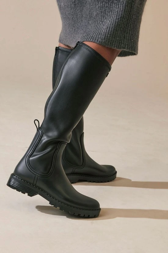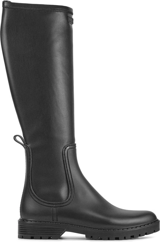 Regenlaars met stretch voor dames van het merk Unisa. Deze lange regenlaars is aan de onderzijde uitgevoerd in rubber en de schacht bestaat uit stretch stof. De laars heeft een treklus en een rits aan de achterzijde om het aan- en uittrekken te versoepelen. De binnenzijde is uitgevoerd in stof en een stevig contrefort draagt bij aan het loopcomfort. De rubberen loopzool heeft een grof profiel voor stevige grip.