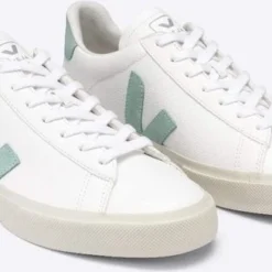 De kenmerkende witte duurzame schoenen van Veja zijn ontzettend hip tegenwoordig. Mensen dragen de schoenen graag bij de casual outfit en door de vrij eenvoudige ontwerpen zijn de schoenen goed te combineren met andere kleding. Kenmerkend aan de schoen is de grote V op de zijkant van de schoen die logischerwijs staat voor de merknaam Veja.