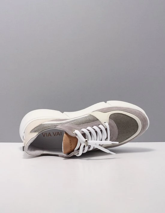 Jij verovert de wereld op de Celina Jess! Met deze ultra-trendy sneakers kleed jij iedere outfit stijlvol af. Zoals typerend voor VIA VAI sneakers, zie je hier ook weer veel bijzondere details terug. Er is gekozen voor verschillende materialen en kleurtinten die perfect matchen met elkaar. Het resultaat is uniek, dynamisch en toch is er eenheid. De zilvermetalen veterstoppers en veteroogjes zijn de finishing touch van deze toffe sneaker!