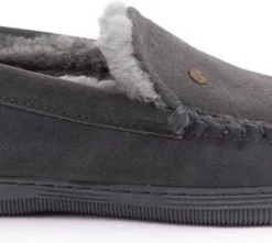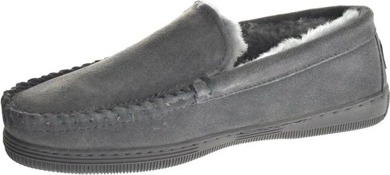 WARMBATDe Warmbat Pantoffel Grizzly GRZ4410 Grijs is een heerlijk warme pantoffel. De pantoffel is gemaakt van Double faced sheepskin dat wil zeggen dat de buitenzijde van suède en de wol aan de binnenzijde bestaan uit één en dezelfde Merino schapenvacht. Heerlijk zacht en voelt heerlijk aan, aan de voet! De pantoffel heeft een natuurlijke temperatuur regulering, warm in de winter en koel in de zomer. De eigenschappen van de zool zijn: anti-slip, schokdempend en slijtvast. Een duurzame pantoffel van zeer hoge kwaliteit met uitstekend comfort!OVER WARMBAT:Warmbat Australië maakt gebruik van 100% originele Australische Merino schapenwol. Deze topkwaliteit schapenwol wordt geselecteerd op dichtheid, kracht, en fijne wol kwaliteit. Merino schapenvacht is om vele redenen de beste keuze voor deze home-shoes. De wol is zeer dicht en behoudt zijn vorm. Het is zacht en licht van gewicht en is daarom het perfecte materiaal voor de Warmbats.SCHAPENWOLSchapenwol is zacht, veerkrachtig en van nature temperatuur regulerend. De vezels “ademen” en zijn daardoor een natuurlijke thermostaat voor je lichaam. De vezels zijn hol, en kunnen tot 30% van hun eigen gewicht aan vocht absorberen zonder dat het vochtig aanvoelt. Deze kwaliteit maakt de wol vochtregulerend, waardoor het mogelijk ontstane vocht op een natuurlijke manier naar de buitenlucht wordt afgevoerd. Ongeacht de weersomstandigheid. In de winter is schapenvacht een natuurlijke isolator, doordat de lucht tussen de vezels uw lichaamswarmte vasthoudt. Dit in tegenstelling tot het synthetische fleece-materiaal dat vaak wordt gebruikt in goedkope alternatieven en die vaak ten onrechte op de markt worden gebracht als “schoenen met schapenvacht”. Bovendien bevat schapenvacht lanoline, dat uw voeten op een natuurlijke wijze hydrateert voor extra comfort. Beste leerkwaliteit Lichtgewicht buitenzool Merinowol gevoerd Warm vlak voetbed Goede pasvorm Comfort kenmerkt iedere Warmbat pantoffel. Uiteraard is een modieuze look noodzakelijk, maar een pantoffel moet vooral heel comfortabel aan je voeten zitten.