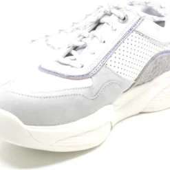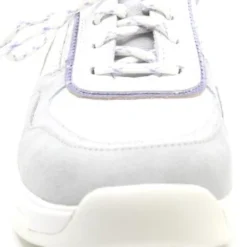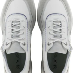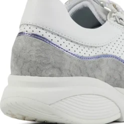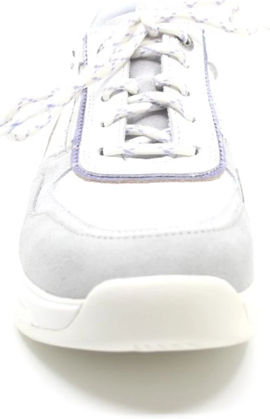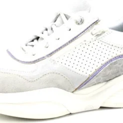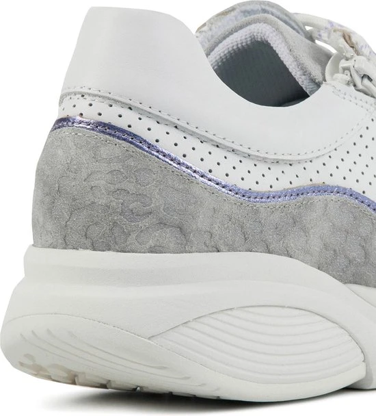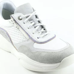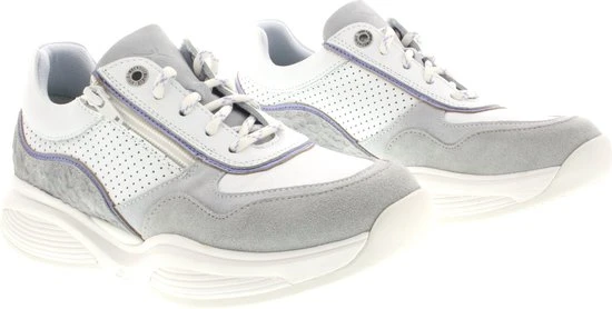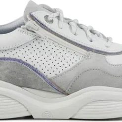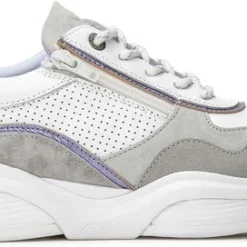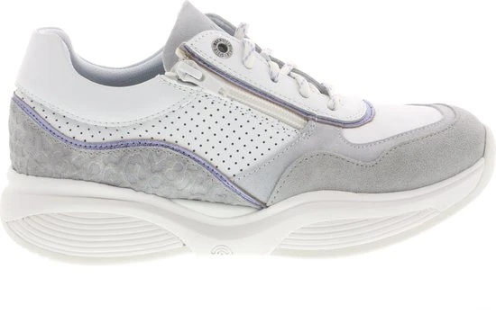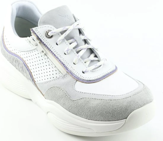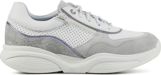Damesschoen model 30085.3 in de kleur wit gecombineerd van Xsensible, Pasvorm Dit model van Xsensible valt normaal op maat Beschrijving Sneaker met rits voor dames van het merk Xsensible. Deze lage sneaker is uitgevoerd in wit leer met perforaties. Tevens is de schoen afgewerkt met grijze suède details. Naast de veters bevindt zich een rits om het aan- en uittrekken te versoepelen. De binnenzijde is uitgevoerd in stof en een suède contrefort draagt bij aan het loopgemak. Het uitneembare voetbed is te vervangen door een persoonlijke inlegzool. De rubberen loopzool heeft een grof profiel voor stevige grip.